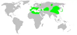 Globally they are found in Europe, Russia, Iraq, Iran, Central Asia, China, Korea, and Japan. The spider lives in warm, open terrain, like heathland, and weaves horizontal cribellate orb webs close to the ground. A stabilimentum is sometimes present, and the spider hangs beneath the hub.[5]
