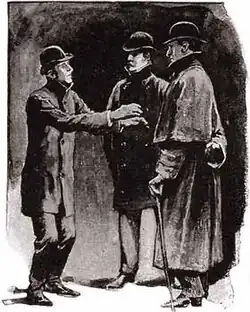 It is often seen in period productions of Victorian novels, such as those of Charles Dickens and Sir Arthur Conan Doyle. The Ulster coat was referred to in Doyle's Sherlock Holmes novels and short stories: A Study in Scarlet, The Sign of the Four, A Scandal in Bohemia, The Adventure of the Blue Carbuncle[4] and The Adventure of the Noble Bachelor (in which it is worn by a noblewoman). In the Sherlock Holmes short story Blue Carbuncle for example, Watson recounts that: “It was a bitter night, so we drew on our ulsters and wrapped cravats about our throats.” It has been used in a great many late-Victorian costume dramas since.