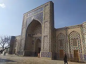 In 1993, on the occasion of the 890th anniversary of Abdul Khaliq Ghijduwani, the Ulugbek Madrasah underwent restoration.[6] In 2003, a large, dome-shaped cupola was erected above the mausoleum of Abdul Khaliq Ghijduwani, and a garden was established.[10][11][6] The cupola's coverings were redone, and the older section of the madrasa, the mausoleum, and the newly constructed mosque were refurbished to meet modern standards.[12][13] Presently, the madrasa's classrooms host a branch of the Bukhara Museum, and its mosque houses a library, continuing its activities.
