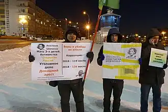 |  Picket in support of Anastasia Shevchenko, first person who was convicted for participation in an "undesirable" organisation | |