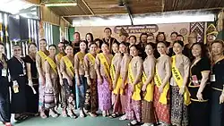 Beginning in 1995, Sabahans residing and working in West Malaysia who celebrate Kaamatan have been acknowledged by the organisation despite the competition are originally between participants from different districts in Sabah.[38] The Unduk Ngadau contest in West Malaysia is organised to provide an avenue for Sabahans, specifically Kadazan-Dusun descent living outside Sabah to participate even after they are born from a mixture of various cultural backgrounds in Malaysia, such as Chinese and Indians; for these individuals to cherish their Sabah's heritage with the most requirements is able to speak the native language in their respective Kadazan-Dusun parentage sub-group dialects.[1][39] Since then, several states in West Malaysia started to send their delegates to the pageant and starting from 2003, the Klang Valley KDCA branch also began to held local Unduk Ngadau competition.[1][40] The first ever representative from the Klang Valley area was Angeline Ongkunik and their first representative to won the state-level Unduk Ngadau crown was Daphne Iking in 2003.[40]