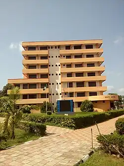The Main Campus currently houses the Faculties of Science, Communication and Information Sciences(CIS),[14] Engineering & Technology,[31] Agriculture, Education, Law, Arts, Business and Social Sciences, (following the completion of the new seven-storey Senate Complex), the Unilorin Sugar Research Institute, Postgraduate School, the Main University Library, Computer Services and Information Technology (COMSIT), works yard, conference centre, Unilorin Resources Development and Management Board (URDMB), student canteens, the newly completed 2,000-seat multipurpose auditorium and the Alumni/ Endowment Office. The Mini-Campus presently houses the College of Health Sciences, a mini library, canteens and shopping complex, the Institute of Education, some of the revenue-yielding projects which are under the URDMB such as the Unilorin Computer Centre (Training Wing), Unilorin Bookshop, the bakery, the printing press, and the guest houses. Each campus has a health centre, a post office, and banking facilities.