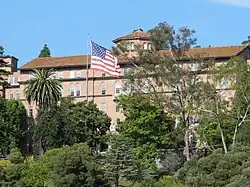 Masonic Home at Union City, a senior living community for Freemasons and their spouses, has as its centerpiece a large brick administration building.[39] The administration building was identified as a significant historic property in the 1974 Historic Resource Inventory of Washington Township.[40] Interior features include a main staircase with stained glass windows, a parlor filled with antiques, and paintings of fourteen Masonic US presidents.[41] The original five-story brick building formed the center of the Administration Building. It was constructed in 1898 and was the Masonic Widows and Orphans Home overlooking Decoto.[35]: 87 The north and south wings of the Administration Building were added in 1914 and 1928, respectively. Ten more buildings were built on this 305-acre (1.2 km2) campus,[42] including Acacia Creek, a continuing care retirement community for all seniors, both Masons and non-Masons, completed in 2010.[43]