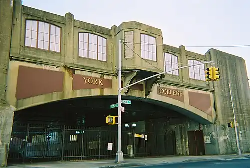 ![]() The facade where Union Hall Street LIRR station used to be, today an entrance to York College (CUNY) | ||||||||||||||||