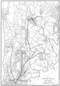 The Bronx Traction Company was formed in 1904 to consolidate the West Farms and Westchester Traction Company, the Wakefield and Westchester Traction Company, the Williamsbridge and Westchester Traction Company, the Van Nest, West Farms and Westchester Traction Company, and the Suburban Traction Company. Bronx Traction was leased to the Union Railway, which was in turn acquired by Third Avenue Railway.[1]