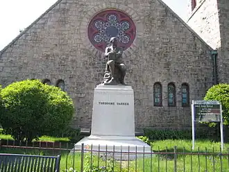 Unitarian minister Theodore Parker (1810–1860) was a prominent reformer and abolitionist. His statue is in front of the Theodore Parker Unitarian Universalist Church in West Roxbury, Massachusetts.