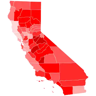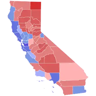 | Sonoma | 64.3% | 116,996 | 29.5% | 53,678 | 1.4% | 2,686 | 1.5% | 2,806 | 2.1% | 3,720 | 1.2% | 2,281 |