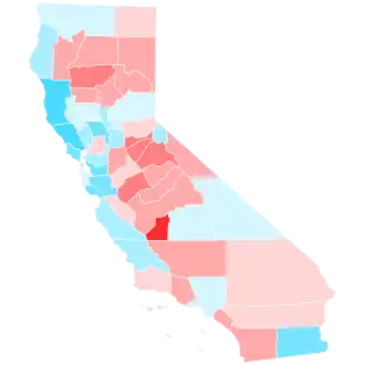 | Tulare | 30.6% | 24,742 | 62.9% | 50,856 | 1.5% | 1,264 | 1.1% | 921 | 1.8% | 1,509 | 2.1% | 1,625 |