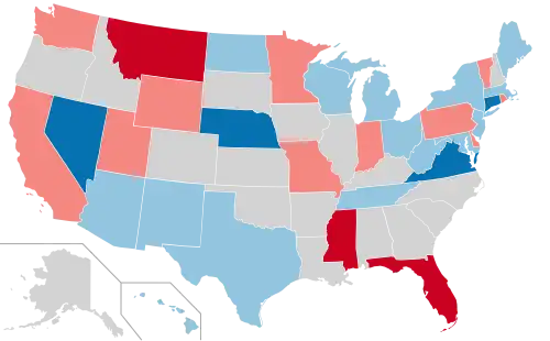 ![]() Results of the elections: Democratic gain Democratic hold Republican gain Republican hold No election | ||||||||||||||||||||||||||||||||||||||||