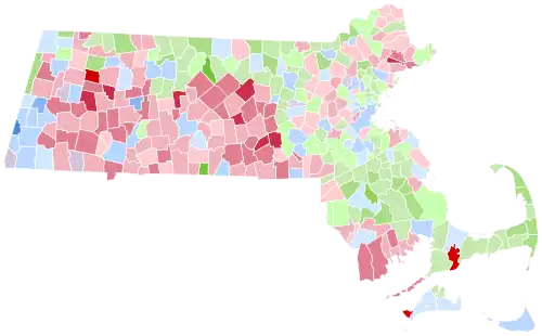 Theodore Roosevelt finished strong for a third-party candidate with 29.14% of the vote, about 2% more than he received nationally, although Massachusetts was not amongst his strongest states. Nonetheless, Roosevelt's performance remains as of 2020 the best-ever third-party presidential performance in Massachusetts.[2] The state's traditional Republican voters, especially in rural Western Massachusetts,[3] proved to be mostly loyal to President Taft as the official Republican nominee. While Roosevelt came in second place nationally ahead of Taft, in Massachusetts, Taft beat Roosevelt and finished second behind Wilson.