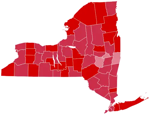 Harding swept every county in the state of New York, winning every upstate county as well as winning all five boroughs of New York City and Long Island. All but five of New York State's 62 counties went Republican with more than 60% of the vote.