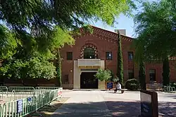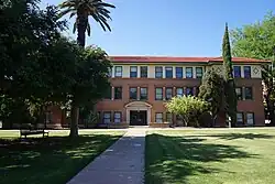 | 1935 | Humanities Building | Roy Place | A two-story brick classroom building in Italian Romanesque Revival style with details similar to Yuma Hall. Arches have spandrels featuring "Pueblo Deco" detailing. Now the Center for English as a Second Language. | |