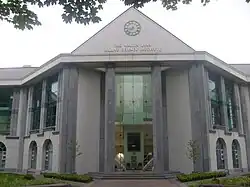 The oldest society on the campus is the Literary and Debating Society, founded in 1846.[48] The university's drama society, Dramsoc, was founded in 1914 after the earliest recorded student production in 1904 demonstrated the need for a student-run drama society.[49] Cumann Staire is one of Europe's oldest history societies, and is a member of Comhaltas na gCumann Staire and the International Students of History Association.[50] The university's Fianna Fáil branch, Cumann de Barra, was founded in 1954, making it the oldest university political party branch in Ireland.[51] Fine Gael's youth wing was founded in the university in 1973 during the Liam Cosgrave-led Fine Gael/Labour Coalition government, with Enda Kenny and Madeleine Taylor-Quinn among those behind its establishment there.[52] Official Sinn Féin were also influential in campus politics in the 1970s, and Students Union Presidents Eamon Gilmore and Johnny Curran were party members.[53][54] CompSoc (the university's computer society) is the oldest of its kind in the country, established in 1977.[55][56][57]