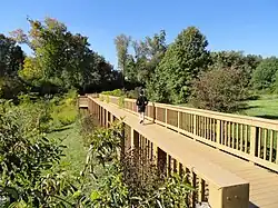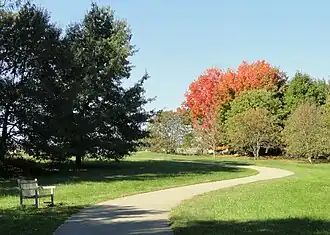 In 1990, land from the College of Agriculture was donated to be a joint venue between the College of Agriculture and the city of Lexington. The Arboretum was created in 1991, at which time it was overrun with non-native invasive plants such as honeysuckle and wintercreeper. The removal of such invasive plants has been and continues to be a major goal of Arboretum staff and volunteers. Every year, the Arboretum has hosted Arbor Day events, and every year there is a different theme. The Arbor Day events mark the beginning of the season, with many attractions happening all day. The peak season of the Arboretum is April 1 to October 31.[4] If you were to take a walk through the Arboretum, chances are you'll see many different things. You could see students sitting on the grass studying, or people walking their dogs on the "Walk Across Kentucky" path. Depending on the time of year, you could even see concerts.[1] Most people go to the Arboretum to enjoy the botanical garden and the outdoors, walk the trails, to let their children play outdoors, to take photos, and for school related trips.[4]