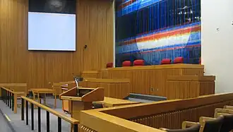 - Teplitz Memorial Moot Courtroom - Located on the ground floor, the moot courtroom, named for the late Benjamin H. Teplitz, includes a seven-seat judges' bench, jury and press boxes, counselors' tables, judges' chambers, and a jury room. It is used primarily by trial tactics classes and by the growing number of moot court programs. It is equipped to handle special sessions of the Commonwealth and Federal Appellate Courts and hearings before various administrative tribunals.