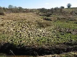The reservation consists of woodland, marshland, open grassland (which is managed by cattle that roam the area), and historic hedgerows.[24] Hollins Brook, a tributary of the River Roch, meanders through the valley and connects with "The Cut," a canal-like lodge popular with local angling groups such as the Unsworth Anglers, before continuing west where it connects with Castle Brook and Whittle Brook.[25][26]