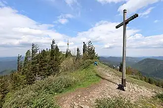The Unterberg is a prominent summit, 1,342 m above sea level (AA) high, in the Gutenstein Alps in southern Lower Austria. It is located about 10 km south of Hainfeld and is the westernmost and highest summit of a loose chain of mountains that include the Hocheck (1,037 m) and the Kieneck (1,106 m). Its crest continues towards the southwest, albeit less high, to the Brunntaler Höhe (1,090 m) and the Leitermauern (1,025 m).