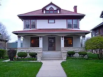 Only a few houses were constructed in the district in the next thirty-five years. The Italianate Fox House was constructed in 1885 and may have attracted other residents to the area. Eleven houses were built on the Upper Bluff from 1888 through 1889, a trend that would continue through the 1890s. Joliet flourished in the early 20th century, further attracting residents to the region. The main commercial district was along Bluff Street, on the west side of the Des Plaines River. Upper Bluff's proximity to the commercial district likely influenced a period of growth of neighborhoods similar to the Joliet East Side Historic District. Some East Side families relocated to the Upper Bluff as pollution from industrial growth in the east increased. The demand for housing was large enough as to attract multiple-family dwellings on the west half of the district. However, Joliet was hit hard by the Great Depression in the 1930s, hampering further development. The Upper Bluff Historic District was added to the National Register of Historic Places on June 5, 1991.