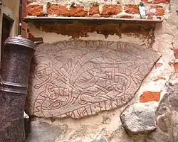 - ^ a b c d Laila Kitzler Åhfeldt, Magnus Källström (2002). "Stockholmsrunor och en huggspårsanalys av runstenen vid Prästgatan". Upptaget - Sankt Eriks årsbok 2002 (in Swedish). Stockholm: Samfundet Sankt Erik, Stockholm City Museum, Museum of Medieval Stockholm. pp. 172–180. ISBN 91-974091-1-1.