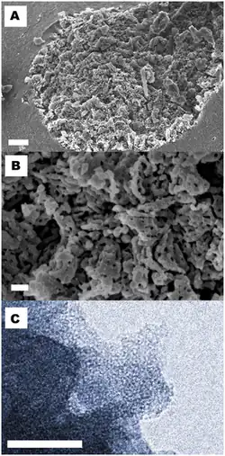 - ^ a b c d e f Forsgren J, Frykstrand S, Grandfield K, et al. A template-free, ultra-adsorbing, high surface area carbonate nanostructure. PLoS One 8, e68486 (2013). doi:10.1371/journal.pone.0068486