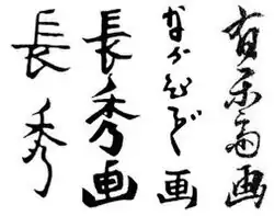 Urakusai Nagahide (Japanese: 有楽斎 長秀), was a designer of ukiyo-e style Japanese woodblock prints who was active from about 1804 to about 1848. He is also known as Yūrakusai Nagahide (有楽斎 長秀), Nakamura Nagahide (中邑 長秀 or 中村 長秀), Chōshū (長秀), and as Chōshūsai (長秀斎). “Nagahide” and “Chōshū” are written with the same kanji. The ending “sai” means studio or hall, and is added or omitted at will by many Japanese artists.[1]