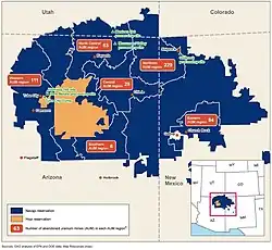 {{cite web}}: CS1 maint: numeric names: authors list (link) - ^ US EPA, REG 09 (2016-06-30). "Water Sampling Results in the Navajo Nation". www.epa.gov. Retrieved 2022-03-01.
