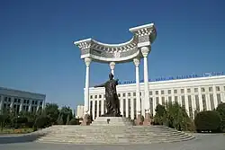 In 1999, the 800th anniversary of Jalaluddin Manguberdi was celebrated in the city, and in 2001, the 2700th anniversary of the creation of the "Avesto" book was commemorated on an international scale.[10][11] In 2003, a number of major sports facilities were built in the city for the Republic Sports Competitions "Umid Nihollari" held in Khorezm. Tourism has developed, especially in connection with ancient Khiva. The local and foreign visitors are served by the "O'zbekiston Turizm" company's branch, as well as the "Jaykhun," "Khorezm Palace," and "Avesto" hotels.[12][13]