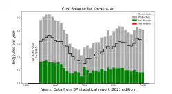 - ^ Kazakhstan energy data, statistics and analysis - coal Archived 2007-03-24 at the Wayback Machine, US Energy Information Agency