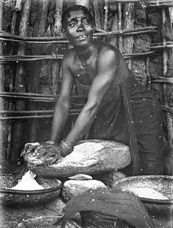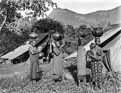 Cassava was not particularly important to Usambara before contact. Bananas were the main staple food, followed closely by maize, sweet potatoes, and yams. But in the years following World War 1, cassava started to gain more popularity. The crop was being strongly promoted by the government as a famine reserve by the 1930s, and it is noteworthy to note that there is no indication in Usambara that farmers were reluctant to produce it. By contrast, in the adjoining plains communities of Korogwe and Handeni district police encountered varying degrees of hostility and apathy in their attempts to force residents to produce the crop. Cassava planting was never a problem in Usambara later on.[73]
