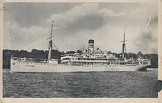 The Usaramo was the first German passenger ship[1] built after World War I and named after a location in the central highlands of German East Africa (now Tanzania).[2][3] She had a crew of 107, could carry 264 passengers and was powered by steam turbine. Her building number was 389 and her home port was Hamburg. Her sister ships were the Ussukuma of the Deutsche Ost-Afrika Linie and the Wangoni of the Woermann-Linie.