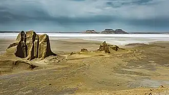 Ustyurt Nature Reserve (Kazakh: Үстірт мемлекеттік табиғи қорығы, Üstırt memlekettık tabiği qoryğy; Russian: Устюрт национальный заповедник, Ustyurt natsional'nyy zapovednik), or the Ustyurt National Biosphere Reserve,[3] is a nature reserve, created on 12 July 1984 in what was then the Kazakh Soviet Socialist Republic (K.S.S.R.), in Mangystau Region, southwest Kazakhstan. Its area is 223,000 hectares (2,230 km2), and lies within Ustyurt Plateau. The reserve lies near the borders with Uzbekistan and Turkmenistan. Its purpose is to preserve the deserts as well as the rare flora and fauna.[2] The Sherkala mountain and the Valley of Balls lie within the reserve.[4] In addition, it contains a big variety of flora and fauna.