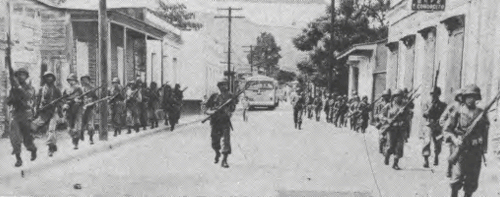 Governor of Puerto Rico Luis Muñoz Marín declared martial law. The United States sent ten P-47 Thunderbolt fighter planes out of Ramey Air Force Base to bomb the town of Jayuya.[9][10] American infantry troops and the Puerto Rico National Guard, commanded by the Puerto Rico Adjutant General Major General Luis R. Esteves, attacked the various towns involved in the Nationalist uprisings. The United States and the Puerto Rico Air National Guard used 500-pound (227 kg) bombs and M2 Browning .50-caliber (12.7 mm) machine guns, leaving Jayuya in ruins, and proceeded to bomb the neighboring town of Utuado, demolishing approximately 70% of the town.[11]