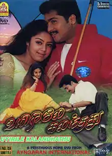 Uyirile Kalanthathu (transl. It's mixed with life) is a 2000 Indian Tamil-language romantic drama film directed by K. R. Jaya which stars Suriya, Jyothika and Raghuvaran, with Sivakumar and Radhika in supporting roles. The film was released in September 2000. This film is the second collaboration of Suriya and Jyothika after Poovellam Kettuppar (1999). It is also Suriya's only release in 2000.