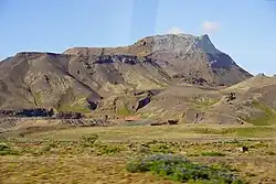 Vífilsfell (Icelandic pronunciation: [ˈviːvɪlsˌfɛtl̥]) is a hyaloclastite ridge in southwestern Iceland (Weichselian).[1] It is 655 m high and located west of Jósepsdalur valley on the volcanic plateau of Hellisheiði.[2] It forms the northernmost offset of the Bláfjöll mountain massif and is situated on top of the fissure system of Brennisteinsfjöll.[3]