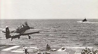 VC-9 (Composite Squadron Nine) was an aircraft squadron of the United States Navy. It was stationed aboard USS Bogue (CVE-9), and USS Card (CVE-11), both of which served part of World War II in the North Atlantic. VC-9 also served aboard the USS Natoma Bay (CVE-62) and took part in the battle of Okinawa. The squadron was decommissioned in 1945 at Arlington, Washington.[2]