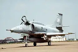 VMF-322 was reactivated during the Korean War on 6 July 1951, again flying the F4U Corsair. The squadron moved to Naval Air Station South Weymouth in January 1954 and transitioned to the F9F Cougar in March 1955. The squadron was re-designated as Marine Attack Squadron 322 (VMA-322) in May 1958 and changed aircraft again, this time to the FJ3 Fury in November 1959. In September 1962 the squadron received its final aircraft in the venerable A-4 Skyhawk. In 1964, VMA-322 absorbed the aircraft and personnel of VMA-217 after their deactivation.
