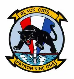 Patrol Squadron 91 (VP-91) was a patrol squadron of the U.S. Naval Reserve. It was the second squadron to bear the VP-91 designation, the first VP-91 was redesignated VPB-91 on 1 October 1944. The squadron was established on 1 November 1970 and deactivated 29 years later, on 31 March 1999. It flew the Lockheed P-3 Orion, and was based at NAS Moffett Field during its entire life. The squadron's nicknames were the Pink Panthers from 1970 to 1984, the Stingers from 1984 to 1991, and the Black Cats from 1991 to 1999. Units of the squadron made 25 major overseas deployments.[1]