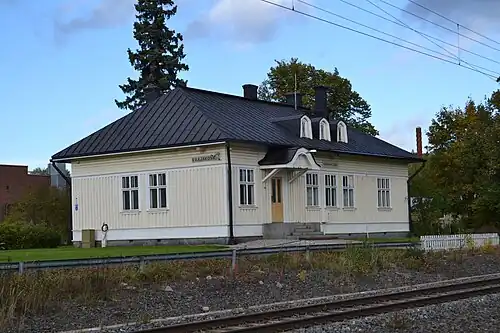 The Vaajakoski railway station (Finnish: Vaajakosken rautatieasema, Swedish: Vaajakoski järnvägsstation) is a station located in the district of Vaajakoski in the city of Jyväskylä (formerly the rural municipality of Jyväskylä), Finland. It is located along the Jyväskylä–Pieksämäki railway, and has since 1992 only served freight traffic, as well as a passing loop; the nearest station with passenger services is Jyväskylä in the west.[2]
