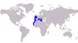 The vadigo inhabits the eastern Atlantic Ocean only, distributed from The British Isles in the north to Senegal in the south, with the species also found around distant offshore islands including Madeira and the Canary Islands.[2] The species is also common in the western Mediterranean Sea, where it has recently been found to extend as far north as the Adriatic Sea. The authors who reported this northern capture believe this shows an expansion of the vadigo's range, comparing it to a number of other carangid species who have recently been found outside of their normal range.[9]