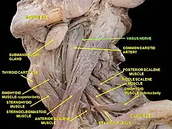 - ^ Freitas, Carlos Alberto Ferreira de; Santos, Luiz Roberto Medina Dos; Santos, Andreza Negreli; Amaral Neto, Augusto Barreto do; Brandão, Lenine Garcia (2020). "Anatomical study of jugular foramen in the neck". Brazilian Journal of Otorhinolaryngology. 86 (1): 44–48. doi:10.1016/j.bjorl.2018.09.004. ISSN 1808-8686. PMC 9422587. PMID 30348503.