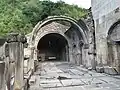 The vestibule and portico first half of the 10th century. The latter stretches to the south of the church and the narthex. Kings and princes of Syunik are buried here. The cornices of the vestibule are decorated with vegetal and animal ornamental motives which border the southern and northern walls.