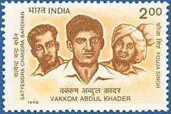 Vakkom Abdul Khader (1917–1943) was an Indian revolutionary and soldier in the Indian National Army, which fought for Indian freedom under Subhas Chandra Bose allied with Japan. Khader was a revolutionary and trained radio communicator. He was hanged in Madras Central Jail on 10 September 1943 with three comrades: Satyen Bardhan, Anandan and Fauja Singh. All the three walked to their execution singing Vande Mataram.[1] Abdul Khader also shouted "Netaji Subhas Babu ki jai! Down with the British Government! Victory to India!"[2]