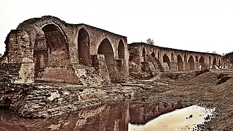 The Band-e Kaisar (Persian: بند قیصر, "Caesar's dam"), Pol-e Kaisar ("Caesar's bridge"), Bridge of Valerian or Shadorvan was an ancient arch bridge in the city of Shushtar, Khuzestan province, Iran, and the first in the country to combine it with a dam.[1] Built by the Sasanians during the 3rd century CE, using Roman prisoners of war as the workforce,[2] it is the easternmost example of Roman bridge design and Roman dam.[3] Its dual-purpose design exerted a profound influence on Iranian civil engineering and was instrumental in developing Sasanian water management techniques.[4]