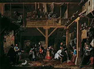 Although trained in the conventional Baroque style, he was exposed to the works of French painters at the court; especially notable in the backgrounds of three scenes from Don Quixote which were commissioned by Elisabeth. Two are now in the Museo del Prado[1] and one is in the possession of the Fundación Banco Santander.[2]