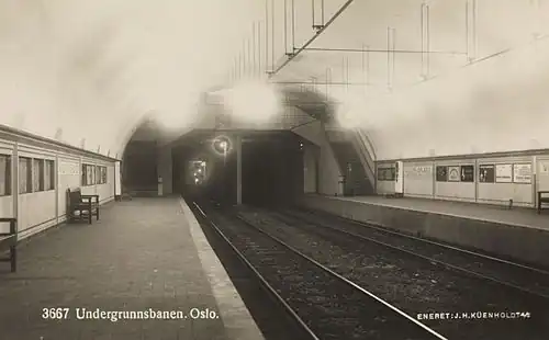 Though not originally planned, when 800 m2 of the street collapsed during the construction of the first parts of Fellestunnelen, a station was built anyway. It was closed in 1985 due its proximity to Majorstuen, and it was both difficult and dangerous to expand the station to accommodate trains with more than two cars (which was needed for the conversion of the western lines to metro).