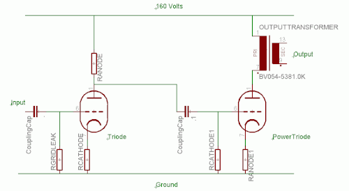 The following circuits are simplified conceptual circuits only, real world circuits also require a smoothed or regulated power supply, heater for the filaments (the details depending on if the selected valve types are directly or indirectly heated), and the cathode resistors are often bypassed, etc.