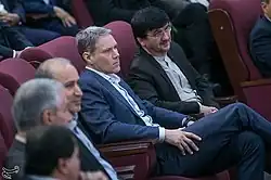 In March 2018, Van Basten travelled to Iran with FIFA president Gianni Infantino to mark 100 years of the Iran Football Federation. After meeting Iranian President Hassan Rouhani they were welcomed by the president of Iranian Football Federation Mehdi Taj at the Tehran Olympic Hotel. Attending the Tehran Derby, Van Basten called for the ban on women entering sports venues to be lifted.[96]