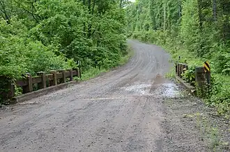 The Van Buren County Road 2E Bridge is a historic bridge in rural southwestern Van Buren County, Arkansas. It is a three-span open concrete masonry structure, with each span measuring 12 feet (3.7 m) in length, carrying County Road 2E across an unnamed tributary of Driver's Creek. The bridge rests on piers and abutments of stone and concrete, and has a roadway deck 19.9 feet (6.1 m) wide. It was built in 1940 with funding from the Works Progress Administration, and is a well-preserved example of a period concrete bridge.[2]