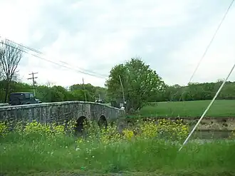Van Metre Ford Stone Bridge is a historic stone arch bridge located near Martinsburg, Berkeley County, West Virginia. Built by Pennsylvania builder Silas Harry, it was built in 1832, and is a three span bridge crossing Opequon Creek. It is 132 feet long and constructed of ashlar limestone. The center span measures 32 feet and the two side spans are each 29.5 feet long.[2][3]