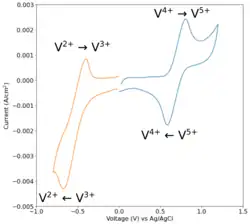 - ^ Aaron, Doug; Tang, Zhijiang; Papandrew, Alexander B.; Zawodzinski, Thomas A. (October 2011). "Polarization curve analysis of all-vanadium redox flow batteries". Journal of Applied Electrochemistry. 41 (10): 1175–1182. doi:10.1007/s10800-011-0335-7.